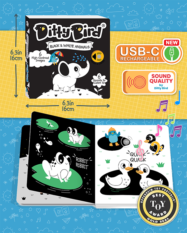 “We love Ditty Bird Books. My son - 1.5 knows how to turn them on and off on his own. He can get an hour (if not more) of entertainment out of these books. Great for when mom or dad need a second. Cute pictures, and great songs. Lyrics included on each page.” - April Smith