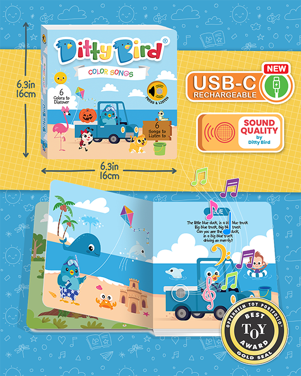 “We love Ditty Bird Books. My son - 1.5 knows how to turn them on and off on his own. He can get an hour (if not more) of entertainment out of these books. Great for when mom or dad need a second. Cute pictures, and great songs. Lyrics included on each page.” - April Smith