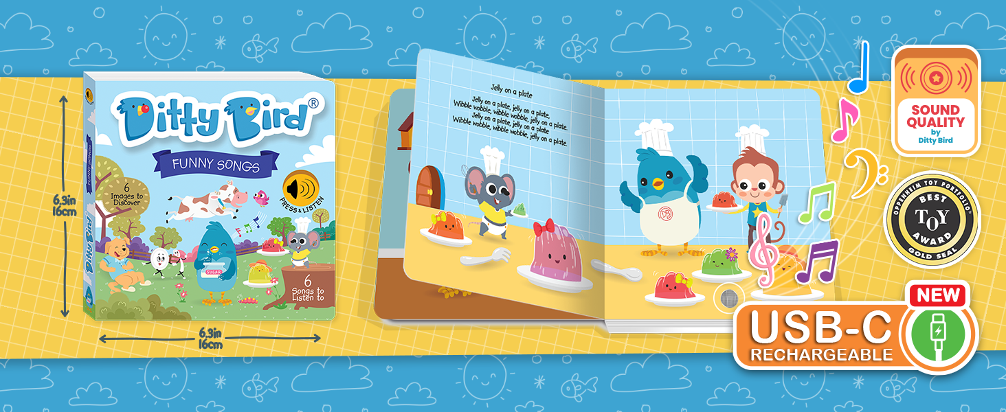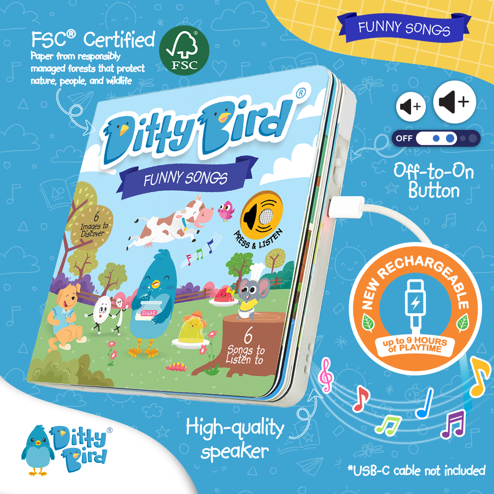 Get ready for a giggle-filled adventure with an engaging funny sound book! Join Ditty Bird as he shares the silliest tunes guaranteed to make toddlers and preschoolers laugh out loud. From wibbly-wobbling all day long to watching cows jump over the moon, it's a musical journey that promises endless smiles and joyful moments.